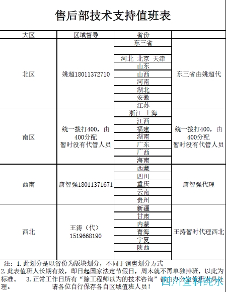 附售后部值班表: