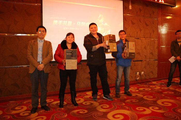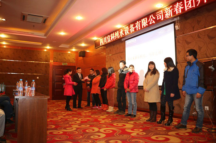 在2014年公司團(tuán)拜會(huì)上李總總結(jié)了公司過(guò)去一年的主要業(yè)績(jī)及成果,并對(duì)新的一年公司的發(fā)展進(jìn)行了規(guī)劃與展望。在李總慷慨激昂的演講下,全體員工深深的感受到了自己作為宜科人的責(zé)任。公司的發(fā)展離不開(kāi)每位員工的付出,公司的美好明天依托著每位員工的努力。每位員工的汗水公司都看在眼里,公司對(duì)優(yōu)秀員工的頒獎(jiǎng)只是公司在表達(dá)您們對(duì)公司的辛勞付出。 李總為我們2014年度9位優(yōu)秀員工頒獎(jiǎng)。 年會(huì)上最激動(dòng)人心的時(shí)刻當(dāng)然是抽獎(jiǎng)啊,人事總監(jiān)楊總為獲獎(jiǎng)?wù)哳C獎(jiǎng)并留言。
