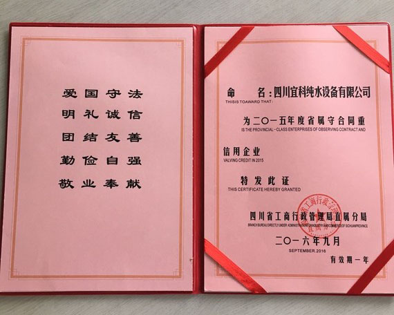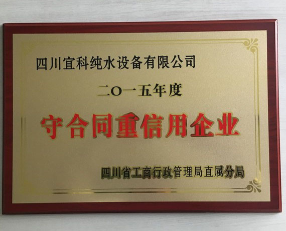 宜科獲得二〇一五年度省屬“守合同重信用”優(yōu)質(zhì)企業(yè)-四川宜科純水設(shè)備